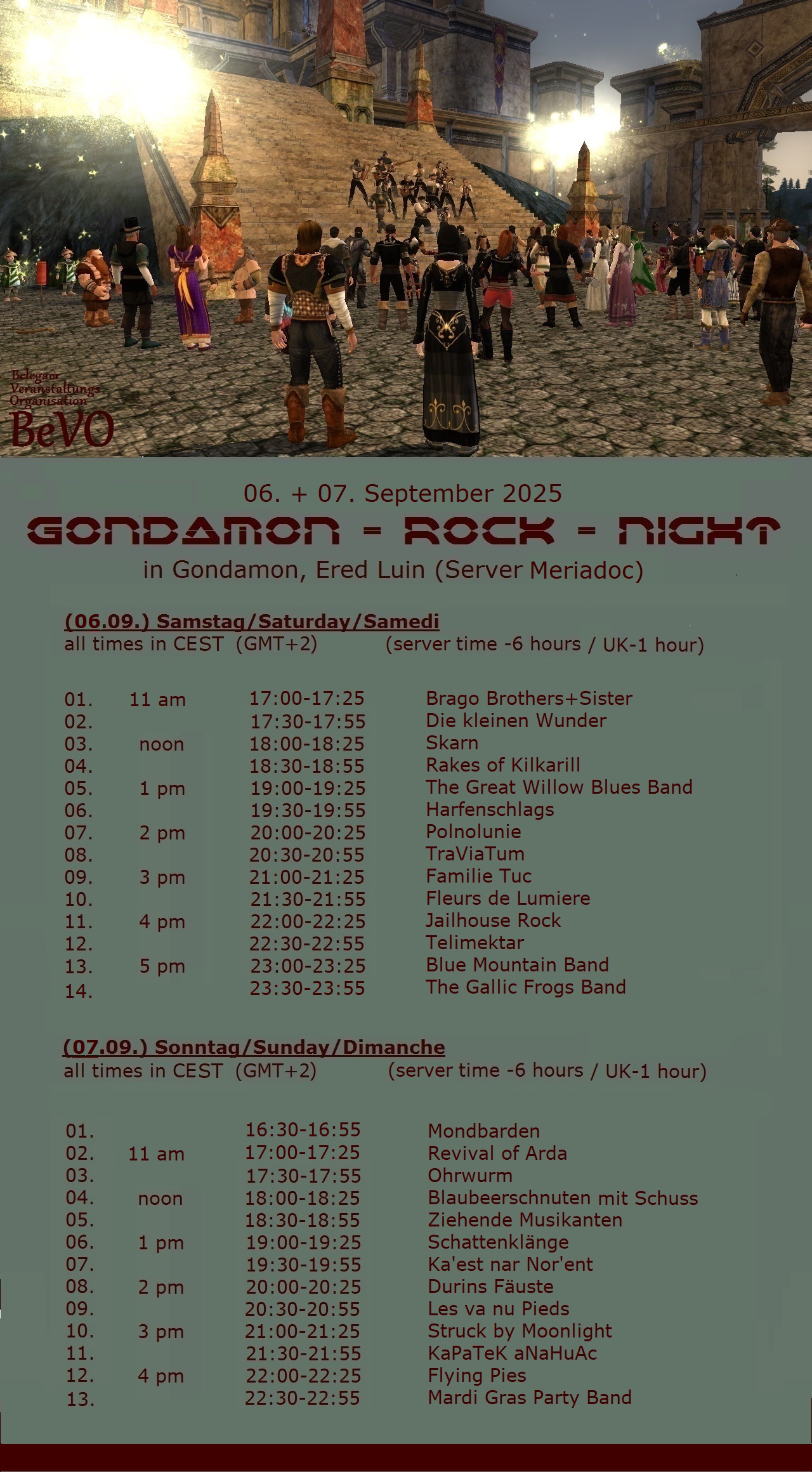 from 2:00 pm to 6:00 pm (Landroval-Servertime) on the Meriadoc server.