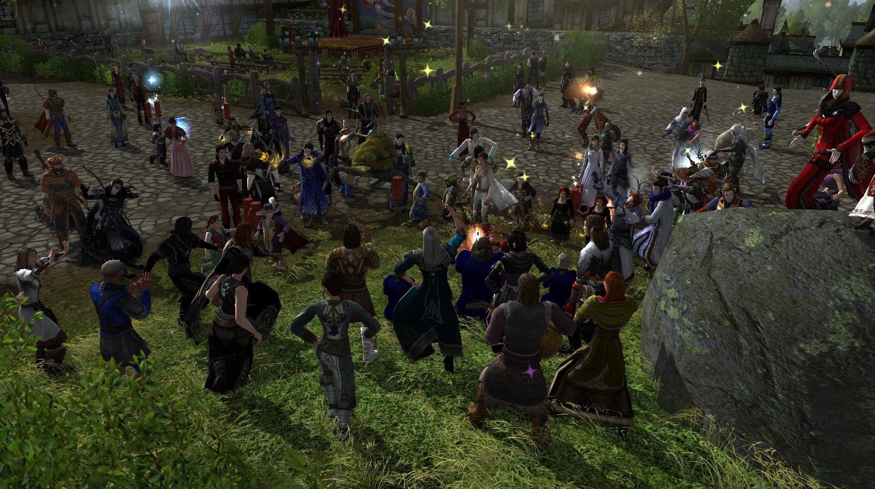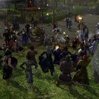Spontane Sylvesterparty in Bree vor dem Tänzelnden Pony.